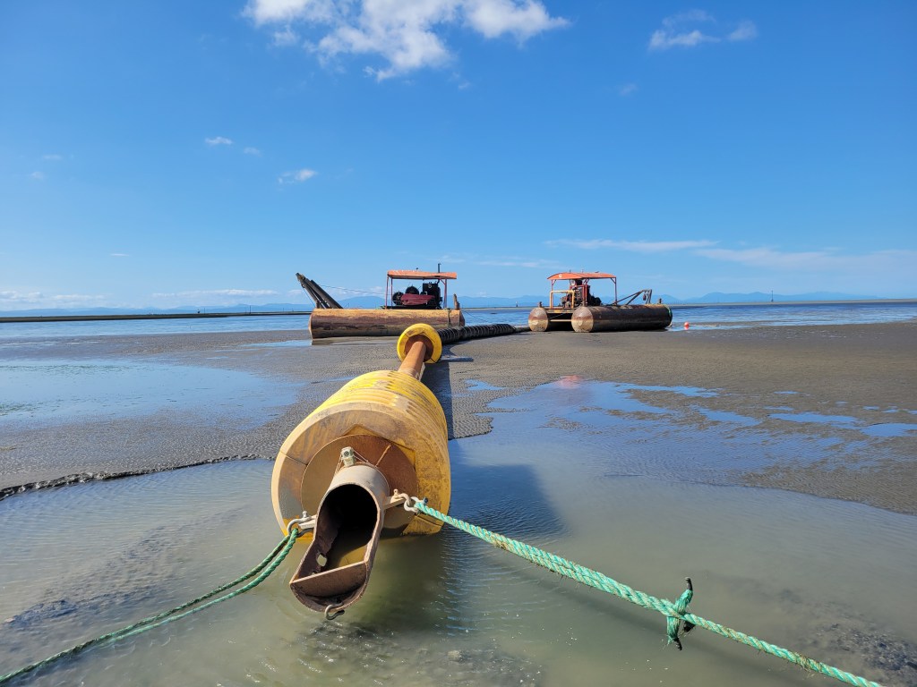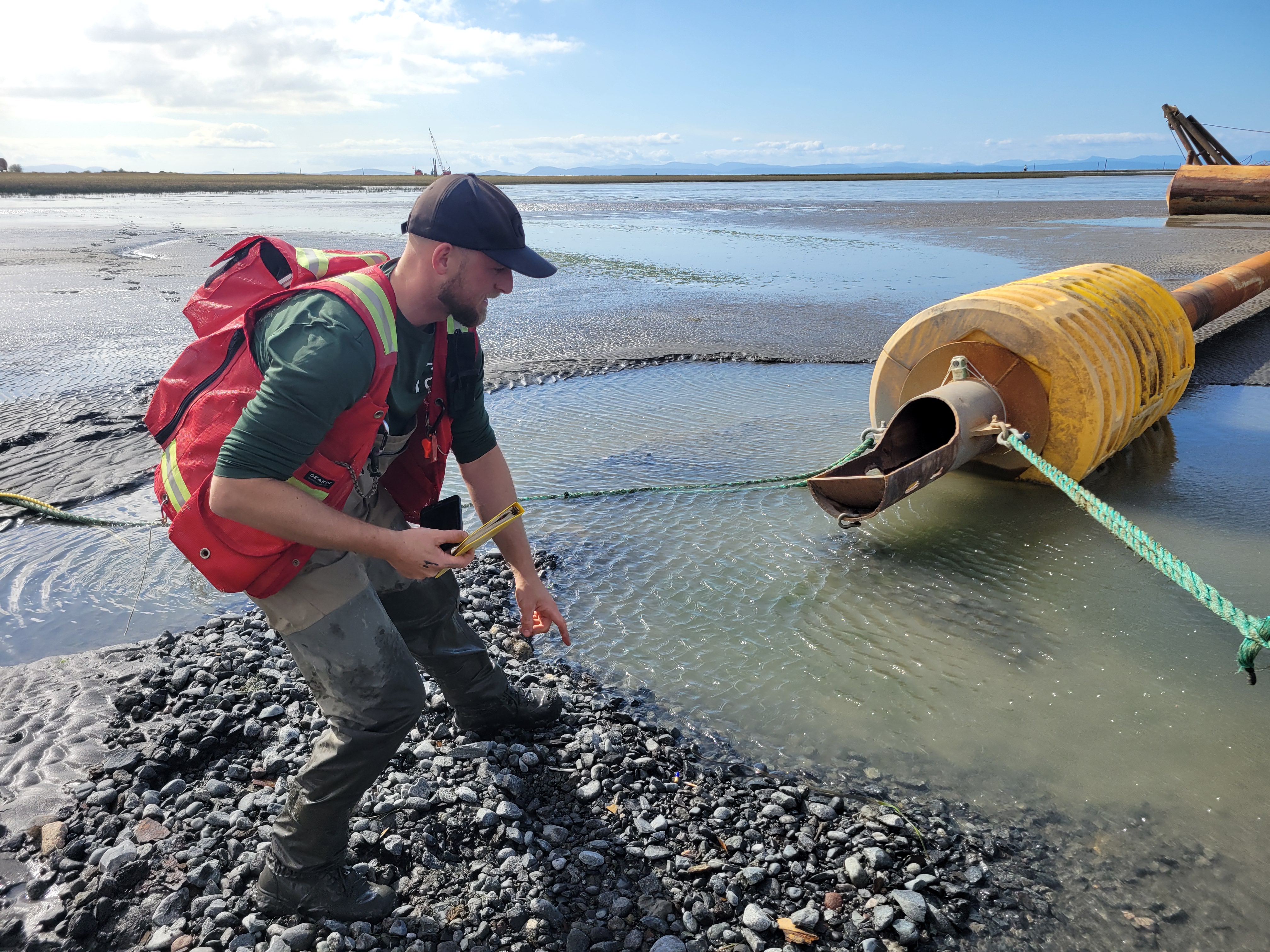Enda and Jeremy had a unique opportunity to visit Sturgeon Bank on the day of dredged sediment placement via pipeline. Thanks to Eric, Jamie and Meagan from Ducks Unlimited Canada for facilitating our site visit!